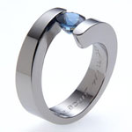with a round, blue sapphire |