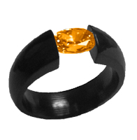 wide band, set with a princess cut, cognac color sapphire
